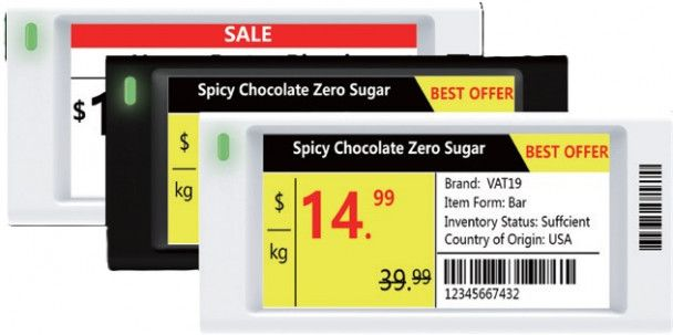Elektroniczne etykiety cenowe wykorzystują technologię e-ink (papier elektroniczny), która zapewnia minimalne zużycie energii i długą żywotność baterii. Wyświetlacz pobiera energię wyłącznie podczas zmiany treści, dzięki czemu może działać przez długi czas bez wymiany baterii.