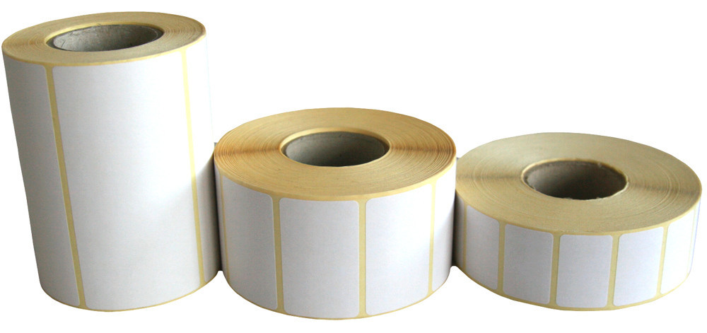 Etykiety termotransferowe 60x40/1000 g.40 półpołysk klej akrylowy 1 rząd nawój zewnętrzny kolor biały rogi zaokrąglone