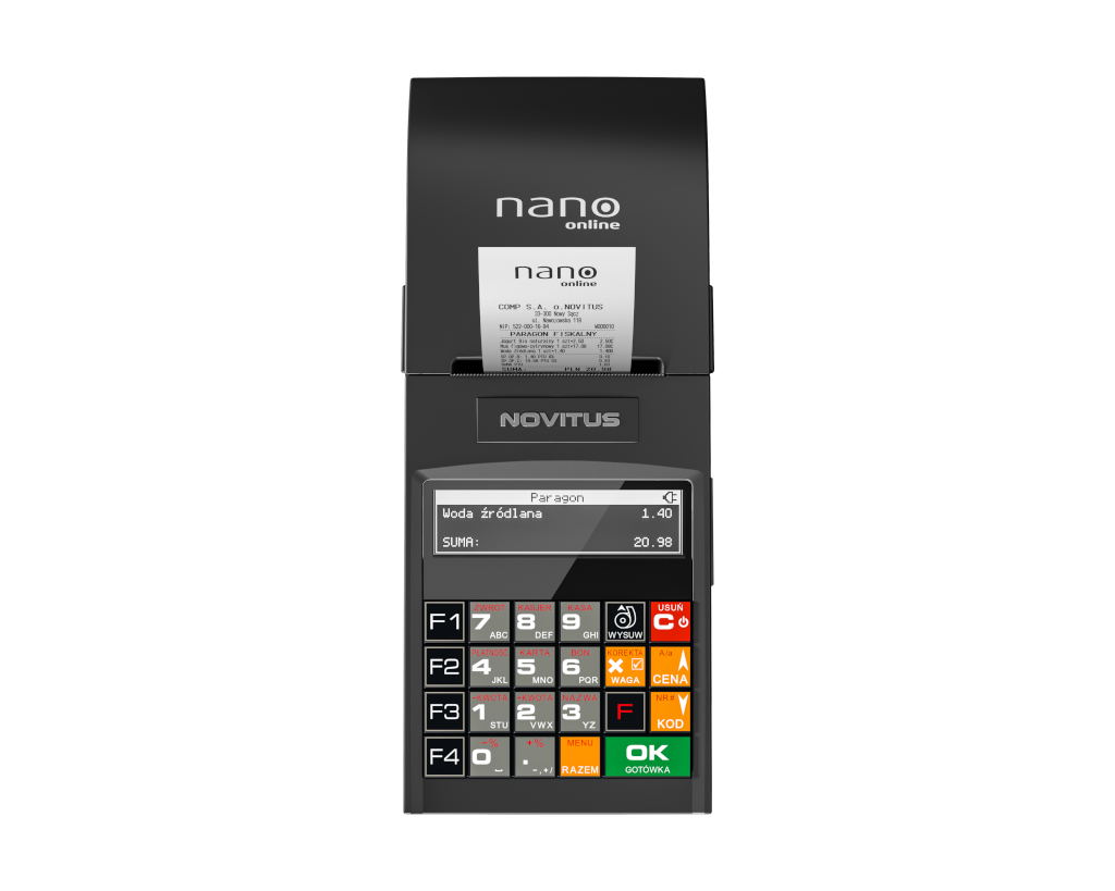 NANO online to wszechstronna kasa, dedykowana zarówno do pracy stacjonarnej jak i w terenie, w usługach oraz średnich i małych placówkach handlowych. Zaufaj marce, używanej przez ponad 900 000 użytkowników. Jest to najmniejsza kasa fiskalna w ofercie NOVITUS, która jednocześnie obsługuje komunikację z Centralnym Repozytorium Kas (CRK), zgodnie z wymogami Rozporządzenia Ministra Przedsiębiorczości i Technologii z dnia 28 maja 2018 r. w sprawie kryteriów i warunków technicznych, którym muszą odpowiadać kasy rejestrujące. Kopia wydruku dla użytkownika przechowywana jest w pamięci chronionej urządzenia, a dostęp do niej jest realizowany poprzez dedykowaną aplikację.